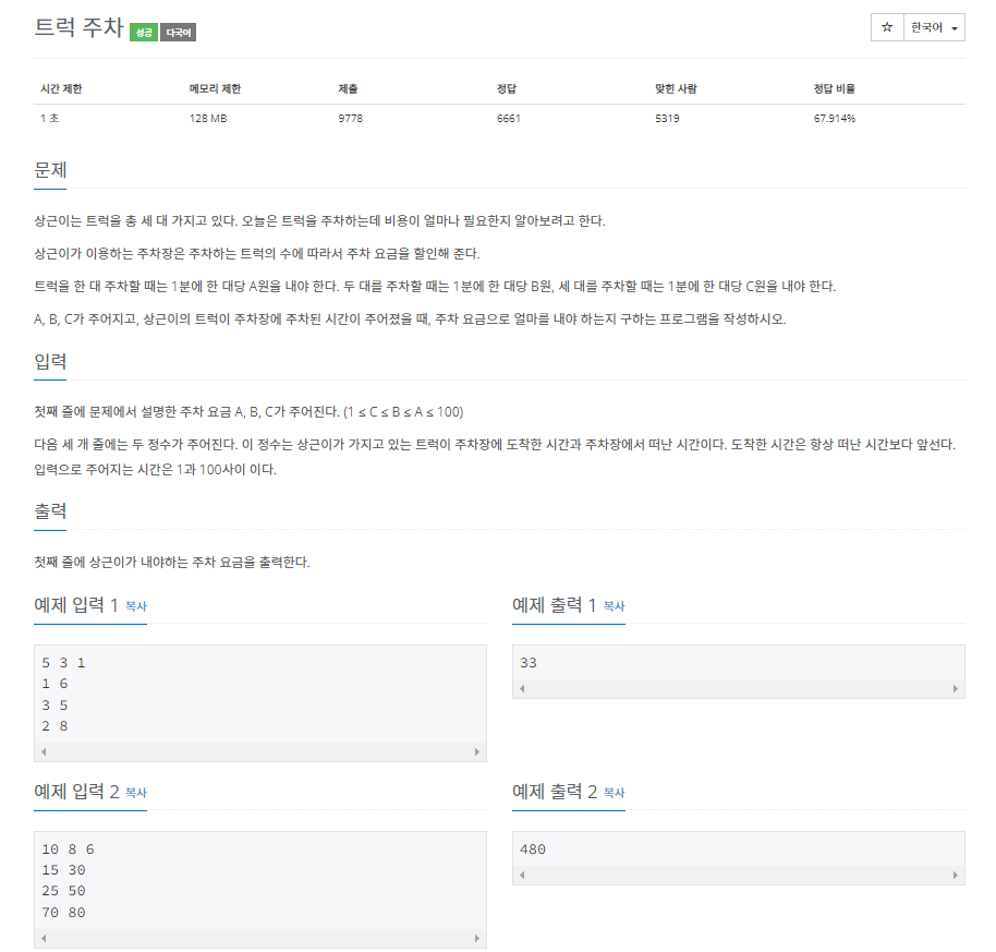 [Baekjoon(백준)][2979번] 트럭 주차(C++)2024년 01월 23일