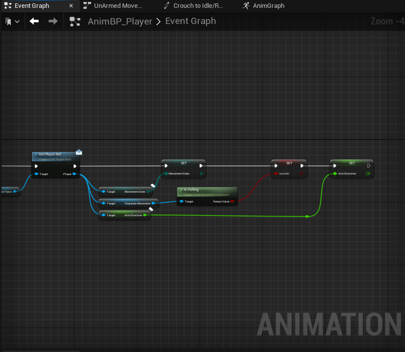 - Blend Node를 사용하여 이동 애니메이션과 Aim Offset 애니메이션을 혼합합니다.